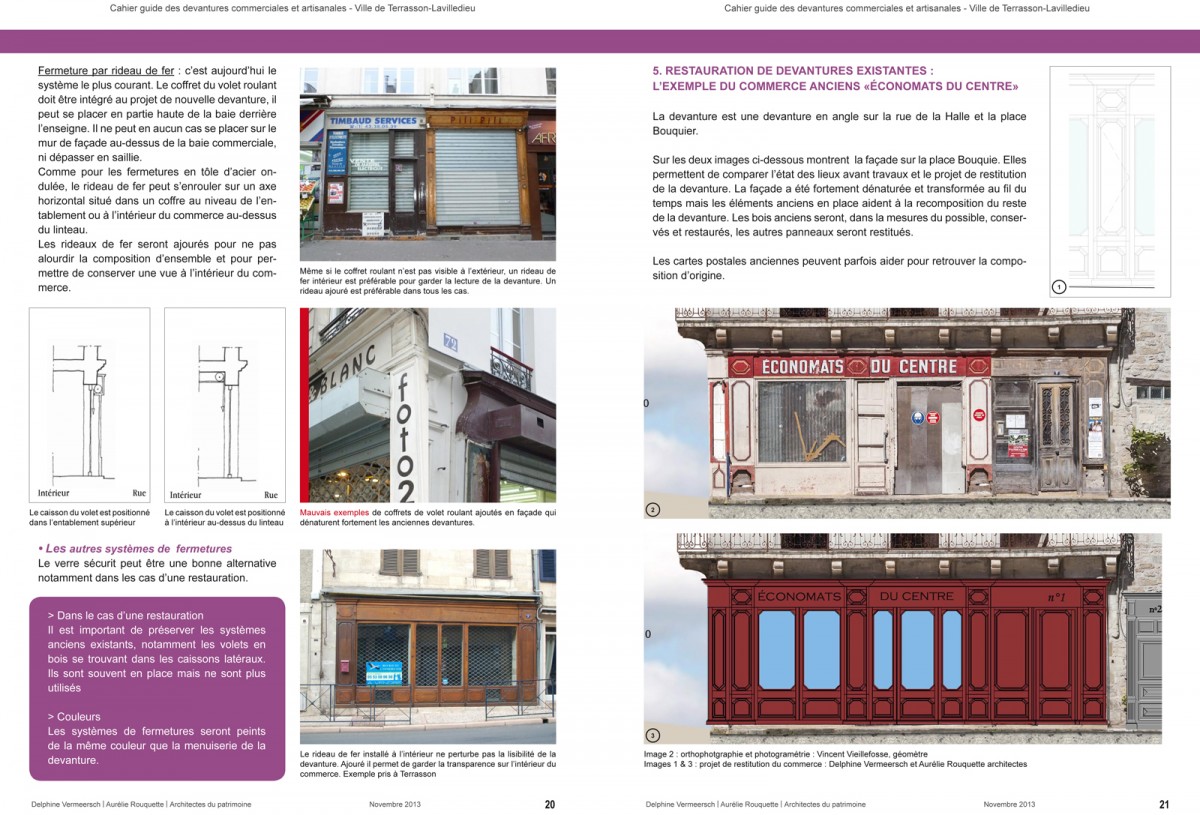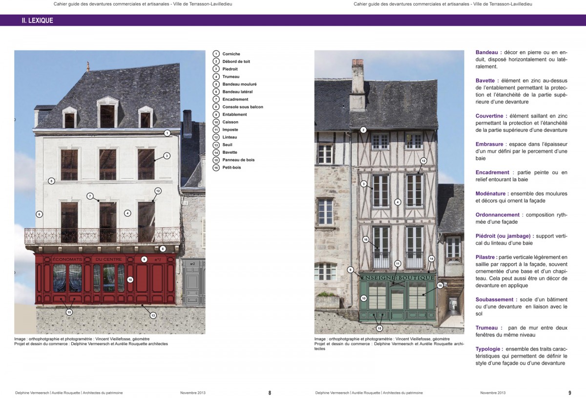 Maître d'ouvrage : Ville de Terrasson-Lavilledieu - Mandataire : Delphine Vermeersch architecte - Co-traitant : Aurélie Rouquette, architecte - Programme / Misison : inventaire / cahier guide de restauration / création de modèles