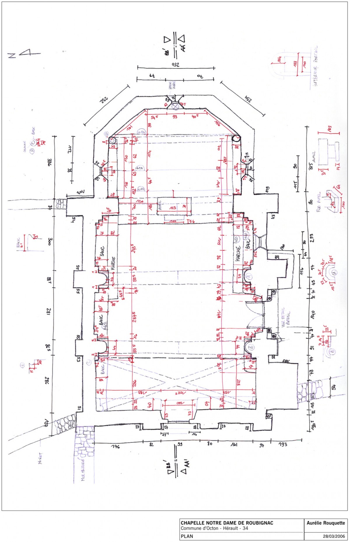 Relevé photographique de détails de la chapelle avec situation sur plan